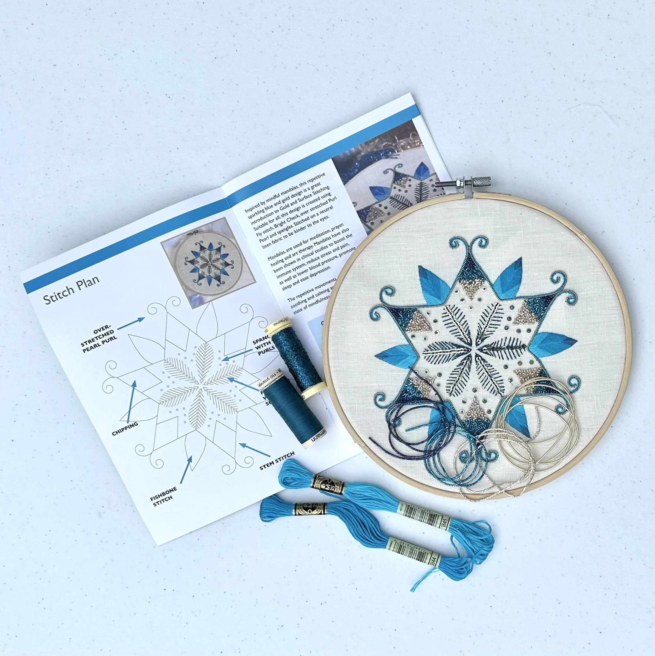 Perfect for those new to Goldwork or decorative surface stitches, offering a gentle, supportive introduction to both techniques.